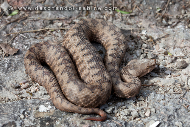 : Vipère ammodyte (Vipera ammodytes ammodytes), femelle, Vižinada, Croatie.