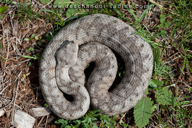 : Vipère ammodyte (Vipera ammodytes ammodytes), femelle gravide, Krk, Croatie.