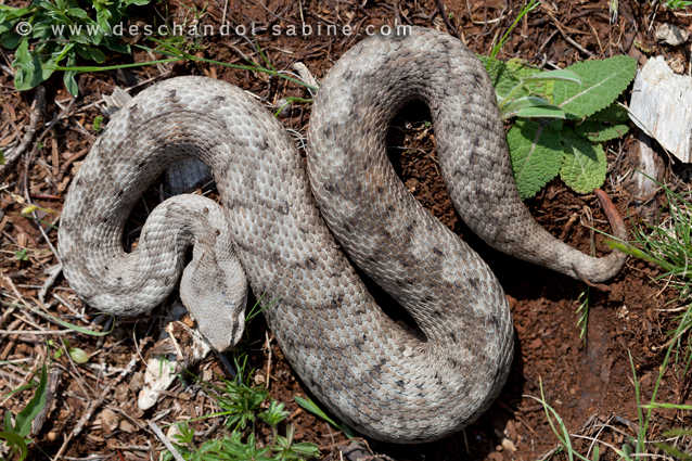 : Vipère ammodyte (Vipera ammodytes ammodytes), femelle gravide, Krk, Croatie.