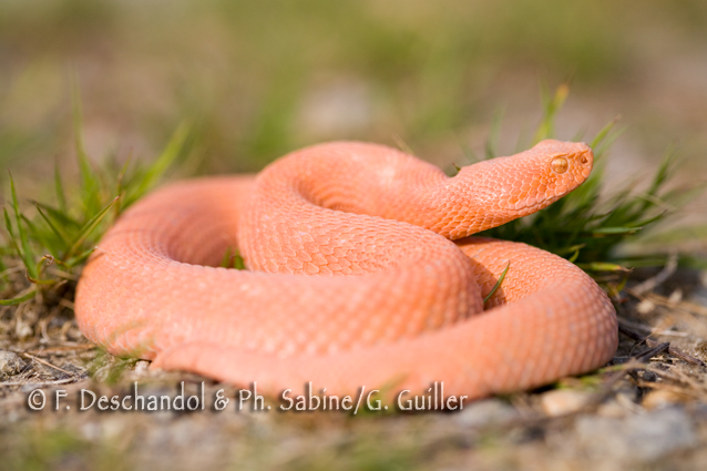 : Vipère aspic (Vipera aspis aspis), femelle albinos, Blain (44), France. Découverte : Gaëtan Guiller
