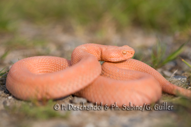 : Vipère aspic (Vipera aspis aspis), femelle albinos, Blain (44), France. Découverte : Gaëtan Guiller