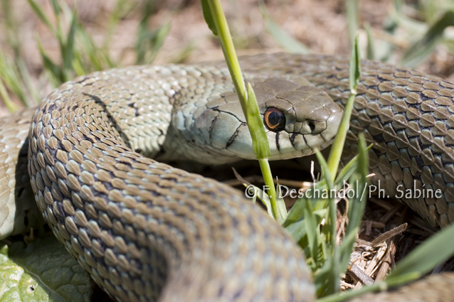 : Couleuvre à collier (Natrix natrix astreptophora), forme sans collier, Vallée d'Embid, Espagne.