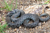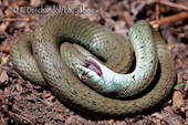 Couleuvre à collier (Natrix natrix astreptophora), forme sans collier, simulation de mort, Alto Tajo, Espagne.