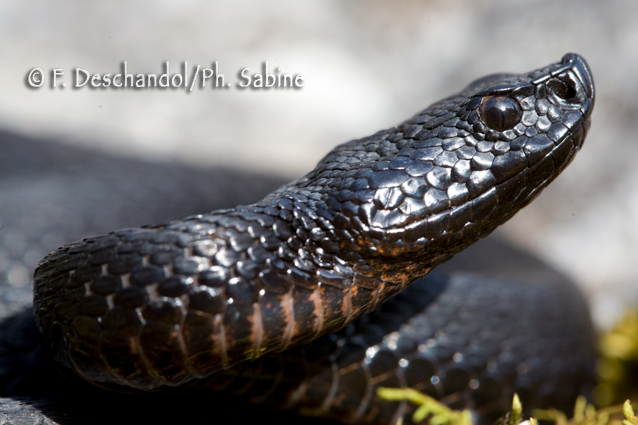 : Vipère aspic (Vipera aspis atra), forme mélanique, Boltigen, Suisse.