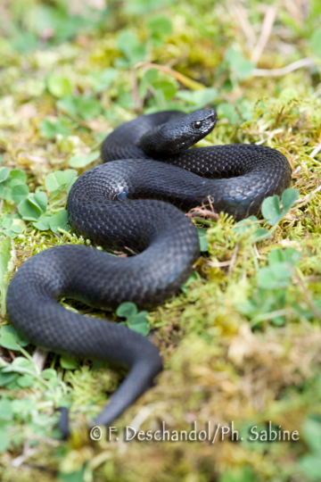 : Vipère aspic (Vipera aspis atra), forme mélanique, Boltigen, Suisse.