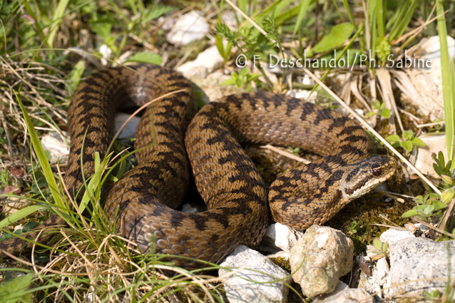 : Vipère péliade (Vipera berus berus), Sandouville (76), France.