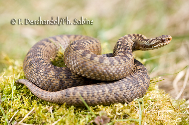 : Vipère péliade (Vipera berus berus), femelle, Sandouville (76), France.