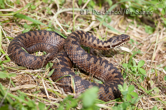: Vipère péliade (Vipera berus berus), Sandouville (76), France.