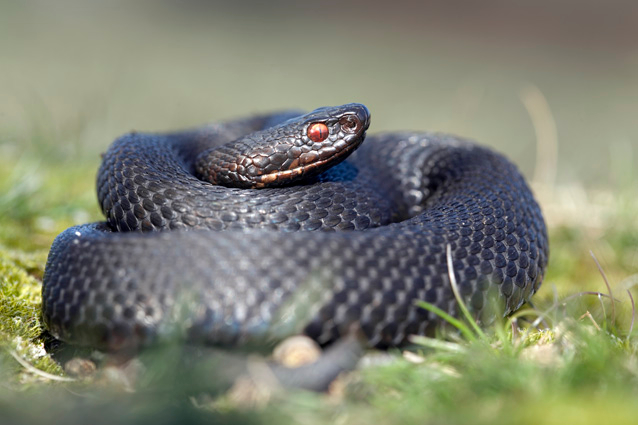 : Vipère péliade (Vipera berus berus), forme mélanique, mâle, Gasteren, Pays-Bas.
