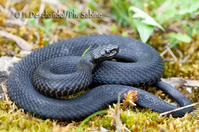 : Vipère péliade (Vipera berus berus), forme mélanique, Pontarlier (25), France.