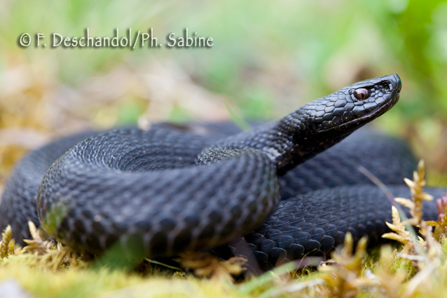 : Vipère péliade (Vipera berus berus), forme mélanique, Pontarlier (25), France.
