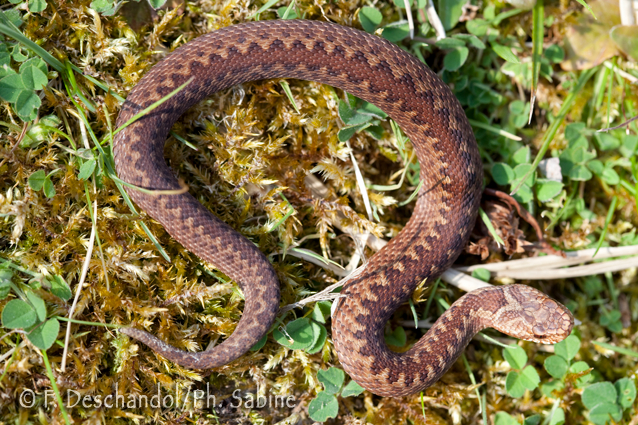 : Vipère péliade (Vipera berus berus), juvénile, Sandouville (76), France.