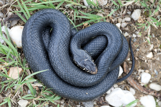: Couleuvre verte et jaune (Hierophis viridiflavus carbonarius), Venise, Italie.