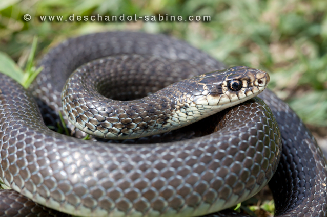: Couleuvre verte et jaune (Hierophis viridiflavus carbonarius), Venise, Italie.