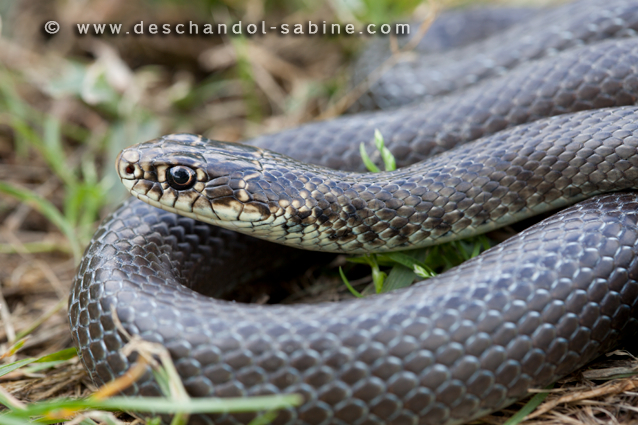 : Couleuvre verte et jaune (Hierophis viridiflavus carbonarius), Venise, Italie.