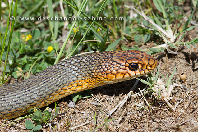 : Couleuvre de la Caspienne (Dolicophis caspius), Velika Plaza, Monténégro.