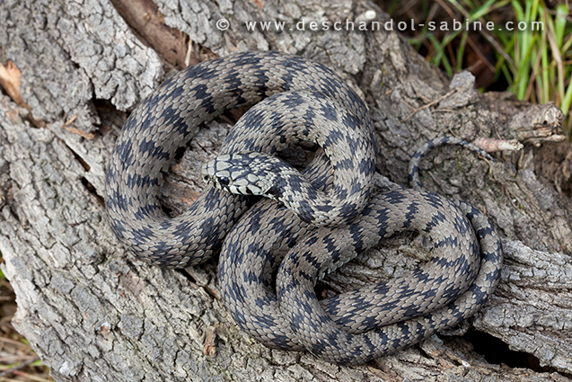 : Couleuvre à collier (Natrix natrix corsa), Portigliolo, Corse, France.