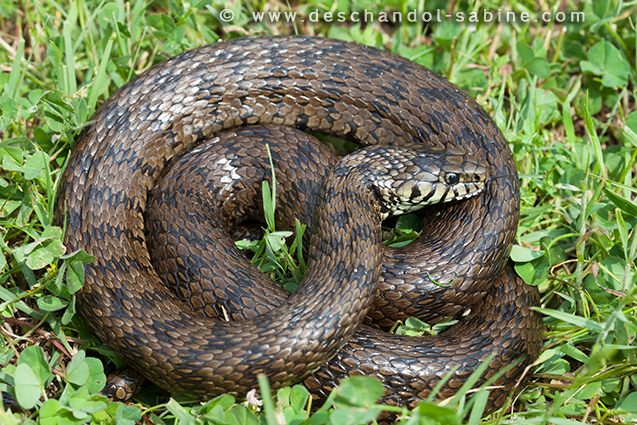 : Couleuvre à collier (Natrix natrix corsa), Portigliolo, Corse, France.
