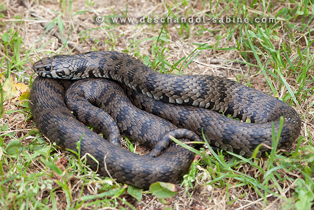 : Couleuvre à collier (Natrix natrix corsa), Portigliolo, Corse, France.