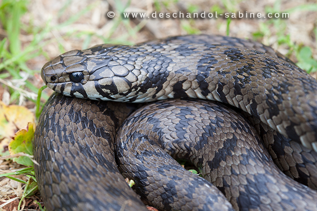 : Couleuvre à collier (Natrix natrix corsa), Portigliolo, Corse, France.