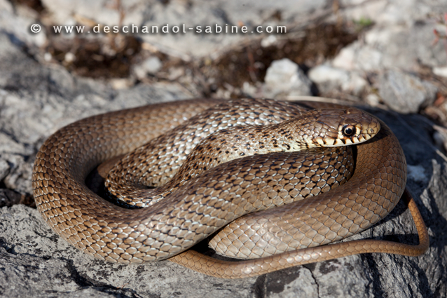: Couleuvre des Balkans (Hierophis gemonensis), Vižinada, Croatie.