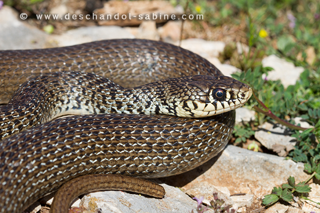 : Couleuvre des Balkans (Hierophis gemonensis), Radosinovci, Croatie.
