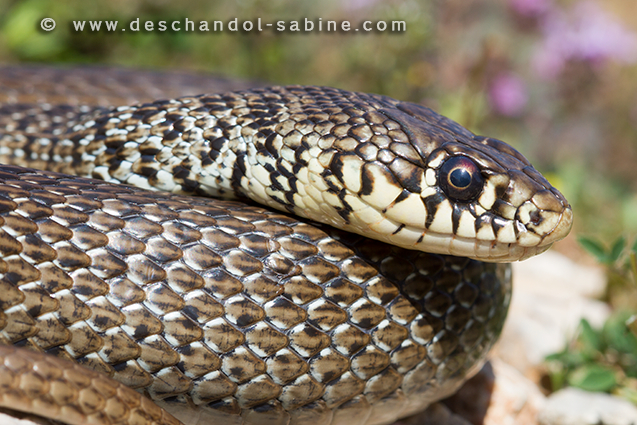 : Couleuvre des Balkans (Hierophis gemonensis), Radosinovci, Croatie.