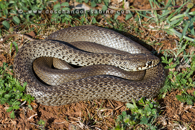 : Couleuvre des Balkans (Hierophis gemonensis), Radosinovci, Croatie.