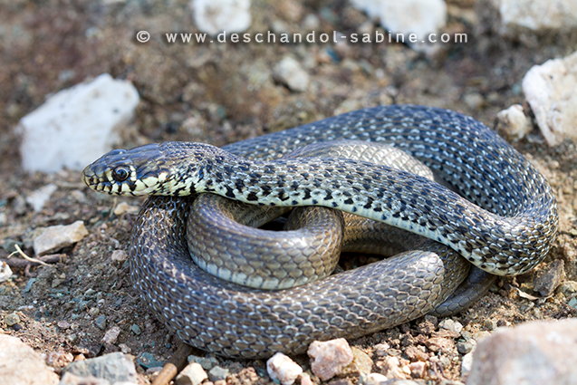 : Couleuvre des Balkans (Hierophis gemonensis), Budva, Croatie.