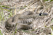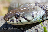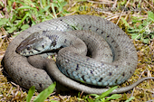 Couleuvre à collier (Natrix natrix helvetica), en mue, Baie de Seine (76), France.