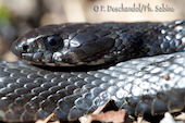 Couleuvre à collier (Natrix natrix helvetica), forme mélanique, Sainte-Engrâce (64), France.