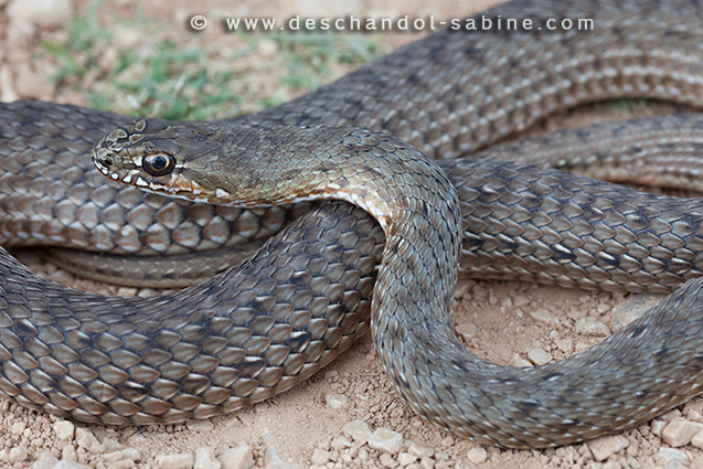 : (Malpolon insignitus insignitus), subadulte, Vransko Jezero, Croatie.