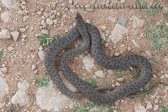 : (Malpolon insignitus insignitus), subadulte, Vransko Jezero, Croatie.