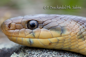 Couleuvre d'Esculape (Zamenis longissimus), femelle, Bouvron (44), France.