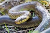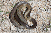 Couleuvre d'Esculape (Zamenis longissimus), juvénile, Bouvron (44), France.