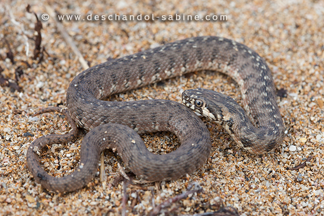 : Couleuvre vipérine (Natrix maura), Cala Tirant, Minorque, Baléares, Espagne.