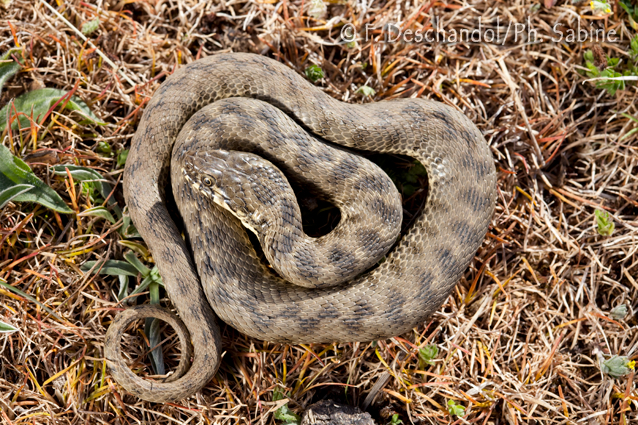 : Couleuvre vipérine (Natrix maura), Lagune de Zaida, Espagne.