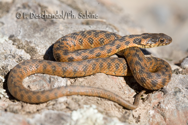 : Couleuvre vipérine (Natrix maura), jeune, Torrejon el Rubio, Espagne.