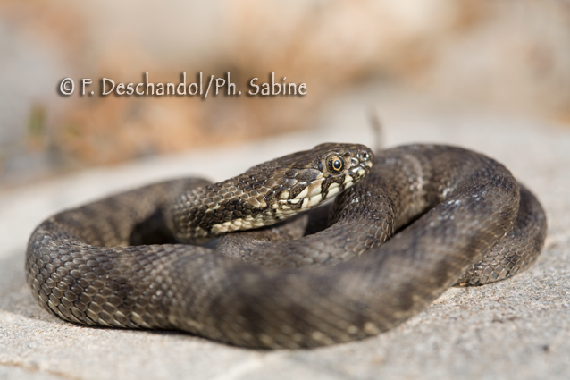 : Couleuvre vipérine (Natrix maura), juvénile, Vallée d'Anso, Pyrénées, Espagne.