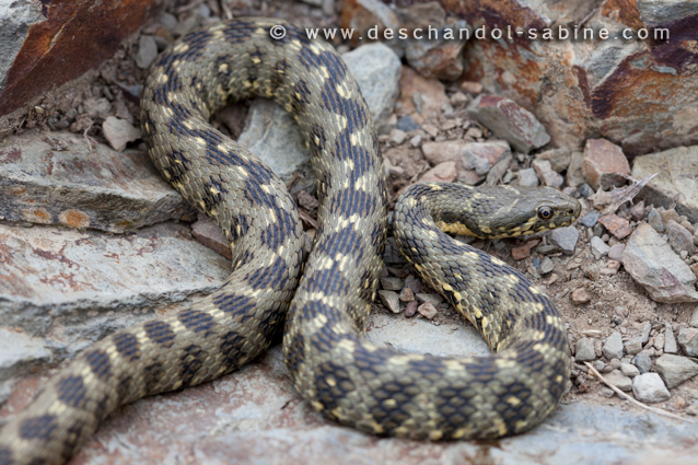 : Couleuvre vipérine (Natrix maura), Jujols (66), France.