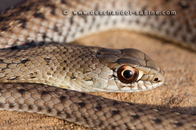 : Couleuvre de Montpellier (Malpolon monspessulanus), Mazagon, Espagne.