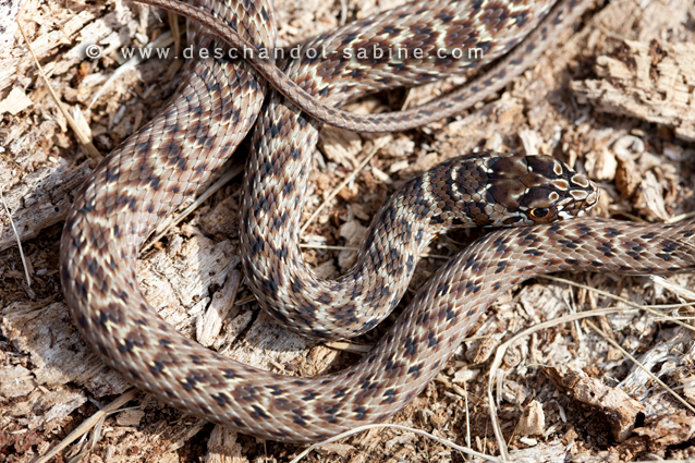 : Couleuvre de Montpellier (Malpolon monspessulanus), jeune, Buenaventura, Espagne.