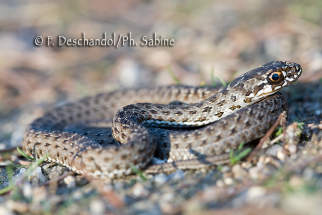 : Couleuvre de Montpellier (Malpolon monspessulanus), juvénile femelle, San Martin de Valdeiglesias, Espagne.