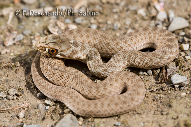 : Couleuvre de Montpellier (Malpolon monspessulanus), juvénile mâle, Vallée d'Anso, Pyrénées, Espagne.