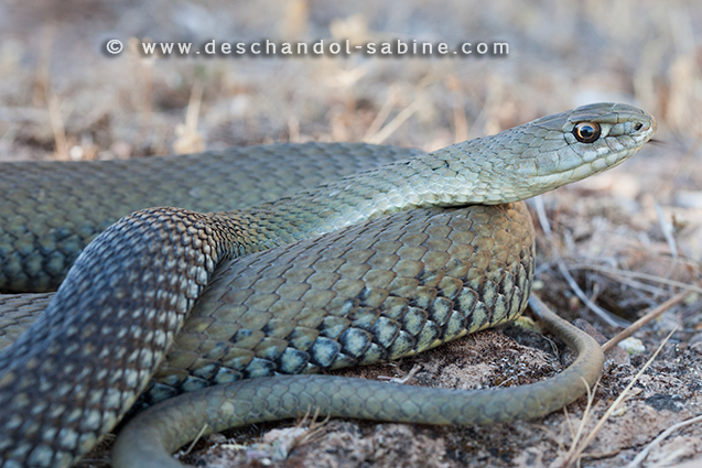 : Couleuvre de Montpellier (Malpolon monspessulanus), mâle, Lorca, Espagne.