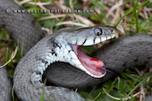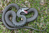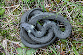 Couleuvre à collier (Natrix natrix natrix), simulation de mort, Asiago, Italie.