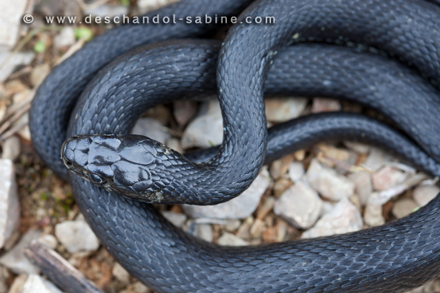 : Couleuvre à collier (Natrix natrix persa), forme mélanique, Krk, Croatie.