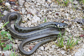 Couleuvre à collier (Natrix natrix persa), forme mélanique, Krk, Croatie.