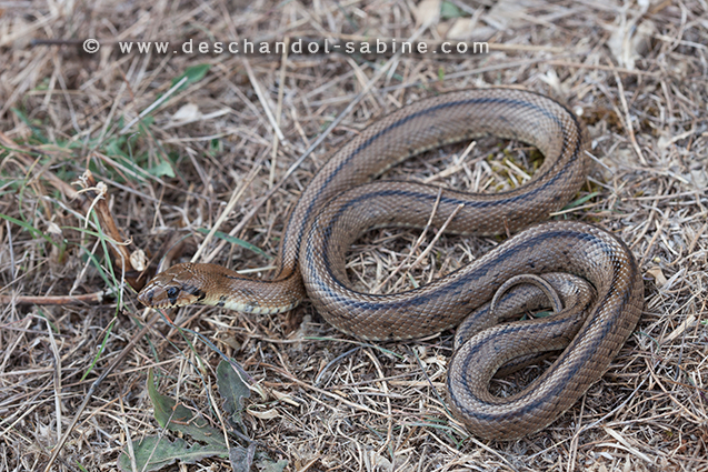 : Couleuvre à échelons (Rhinechis scalaris), Pla de s'Alzinar, Minorque, Baléares, Espagne.