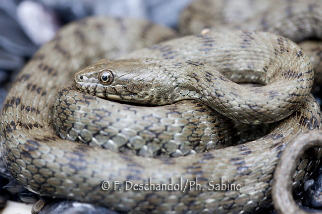 : Couleuvre tesselée (Natrix tessellata), Lac Léman, Suisse.